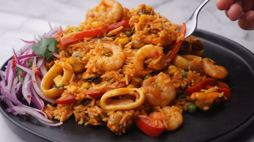 Peru’s coast is known for its fresh seafood, but ceviche is just the beginning. Arroz con mariscos (seafood rice) is another popular dish, mixing a variety of fresh seafood like shrimp, clams, and squid with rice. The result is a flavorful, aromatic dish full of coastal flavors.